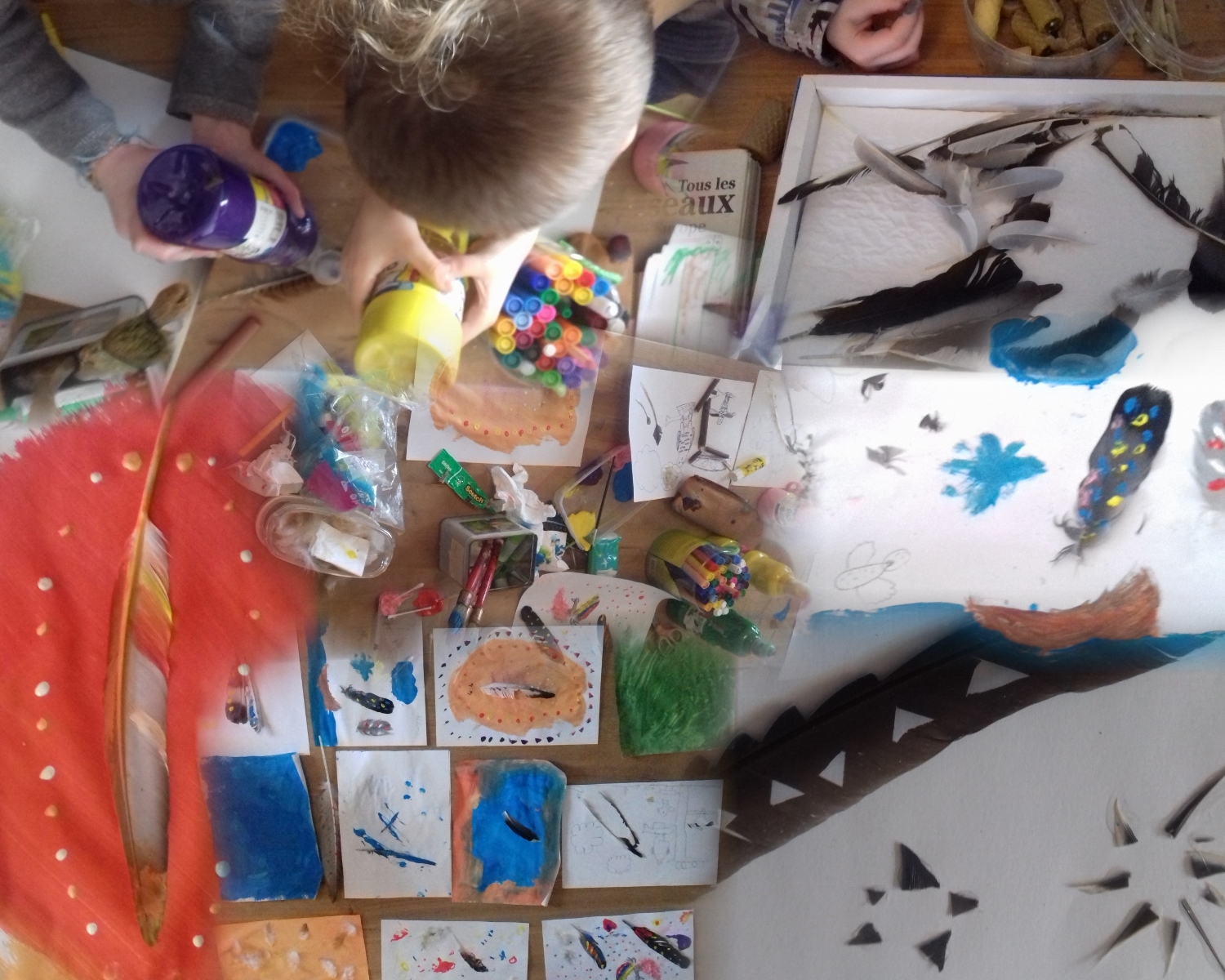 Animaux, Ateliers Nature, Bilan Ateliers Nature, Oiseaux, Stage Nature Des plumes en pagaille pour prendre son envol Publié par SortiesNature78 le 2 février 2017 Quand est apparu le vol chez les oiseaux ? Les dinosaures avaient-ils des plumes ? Voici des questions auxquelles nous avons réfléchi ensemble. Les enfants ont aussi innové en création à partir de plumes !